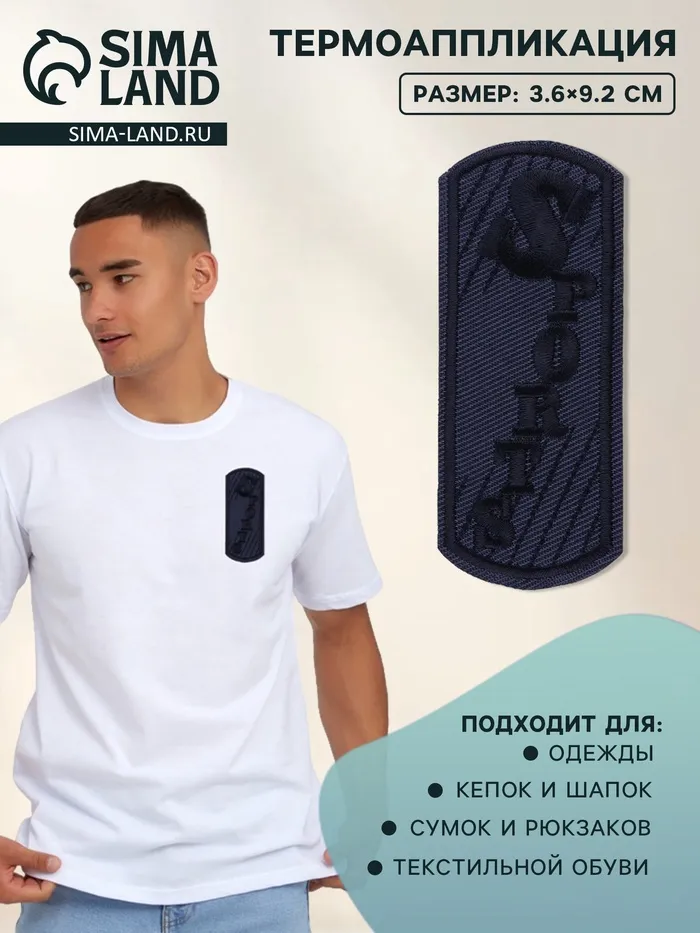 Термоаппликация Sports, 3.6×9.2 см, тёмно-синяя — Характеристики