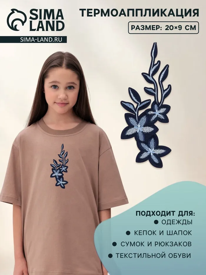 Термоаппликация «Цветы», 20×9 см, серая, синяя — Характеристики