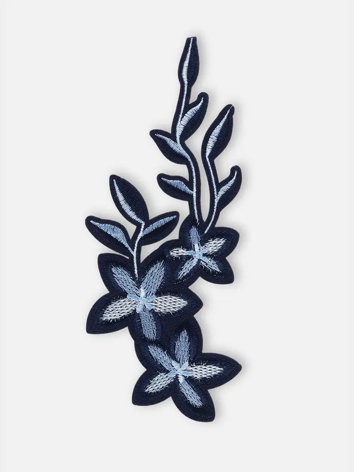 - Универсальный дизайн: Сочетается с любой одеждой. Синие и серые оттенки делают аппликацию нейтральной, но выразительной. Подходит как для повседневного образа, так и к празднику.