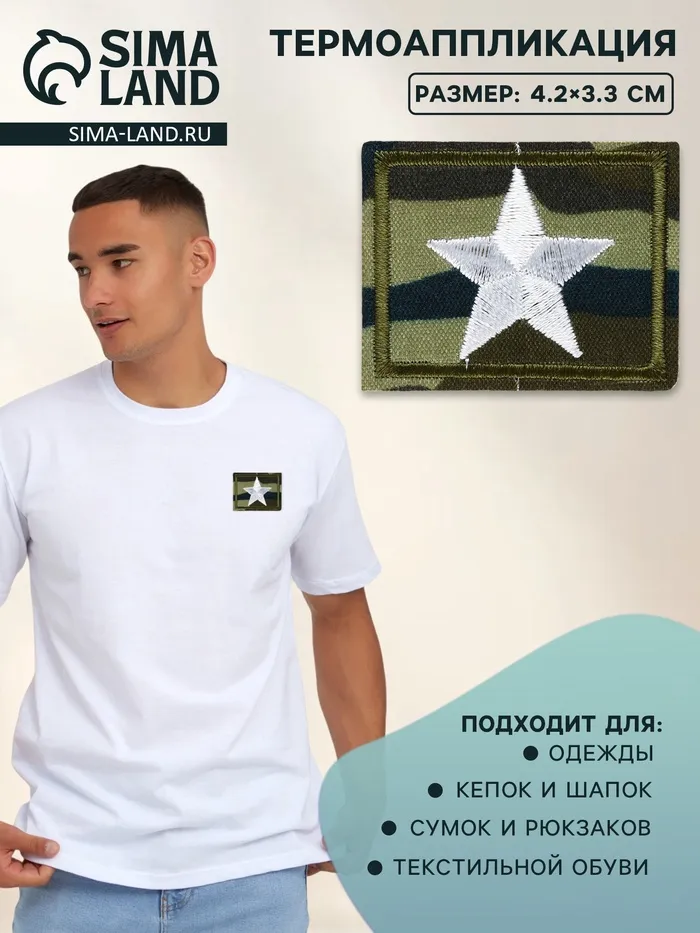 Термоаппликация «Звезда», 4.2×3.3 см, хаки — Характеристики