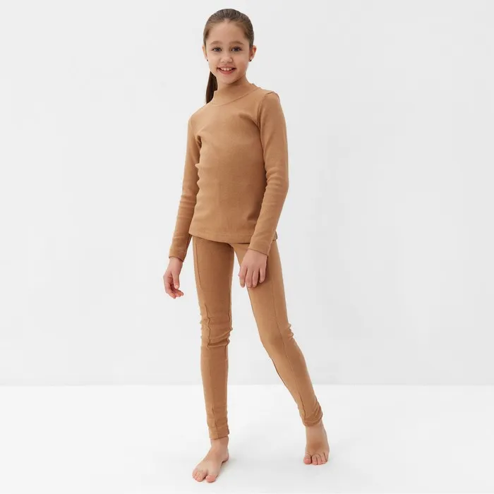 Термобелье для девочки (лонгслив, легинсы) цвет бежевый, рост 110