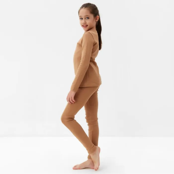 Термобелье для девочки (лонгслив, легинсы) цвет бежевый, рост 122