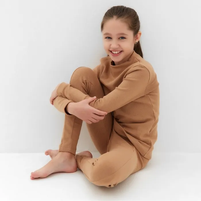 Термобелье для девочки (лонгслив, легинсы) цвет бежевый, рост 134