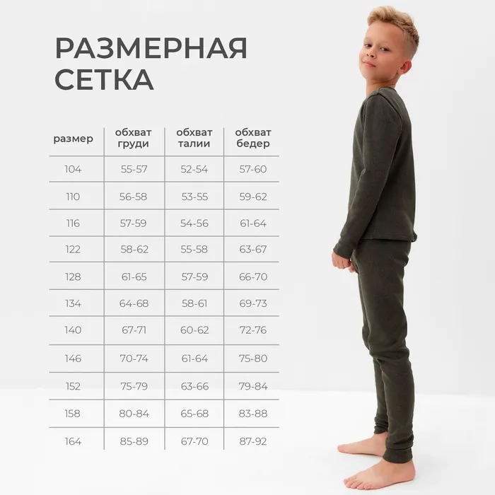 Термобелье для мальчика (лонгслив, легинсы), хаки, рост 152 см — Характеристики