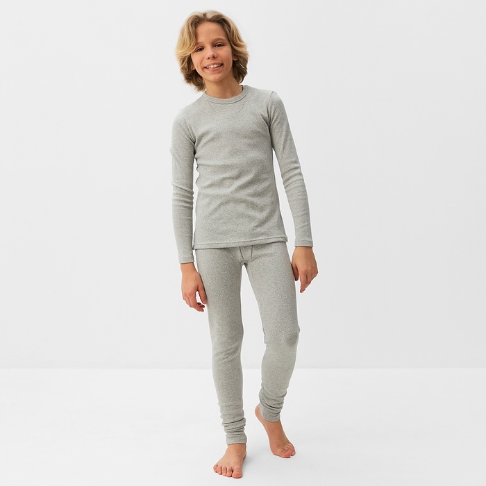 Термобелье для мальчика (лонгслив, легинсы), цвет серый меланж, рост 128 см