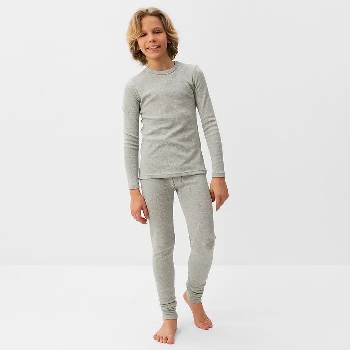 Термобелье для мальчика (лонгслив, легинсы), цвет серый меланж, рост 158 см