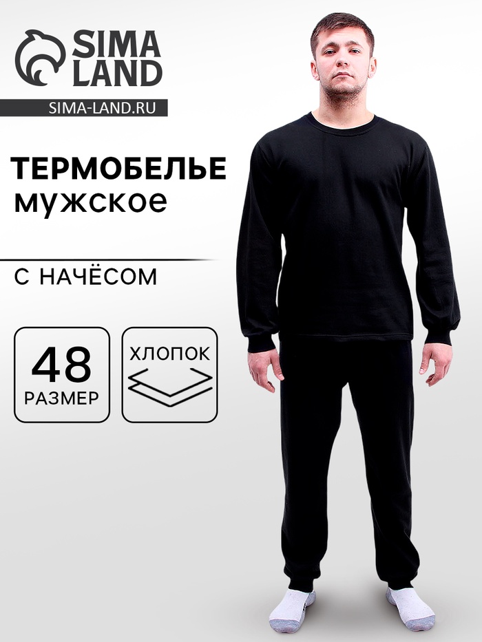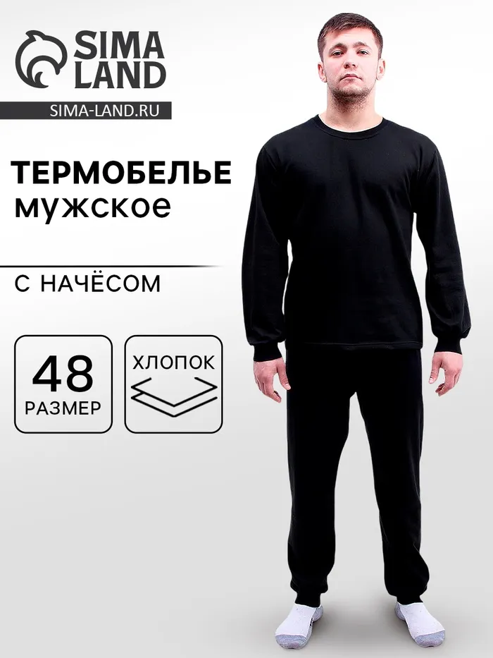 Термобелье мужское с начёсом, размер 48, цвет чёрный — Характеристики