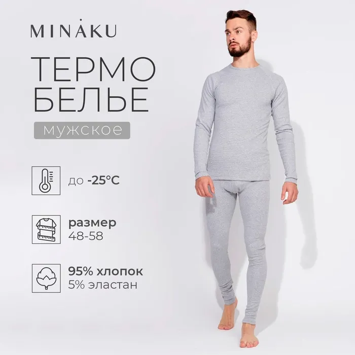 Термобельё мужское (джемпер, брюки) MINAKU, цвет светло-серый меланж, размер 48 — Характеристики
