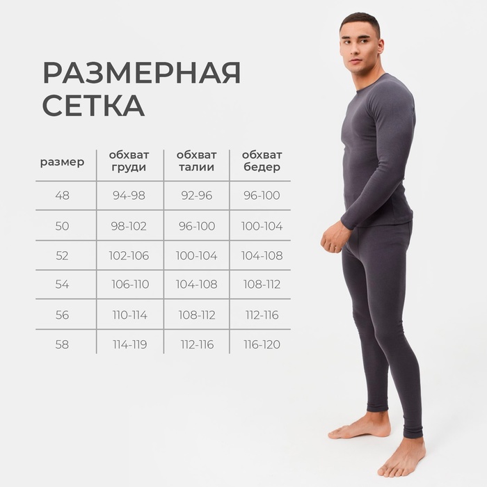 Термобельё мужское (джемпер, брюки) цвет графит, р-р 50 — Характеристики