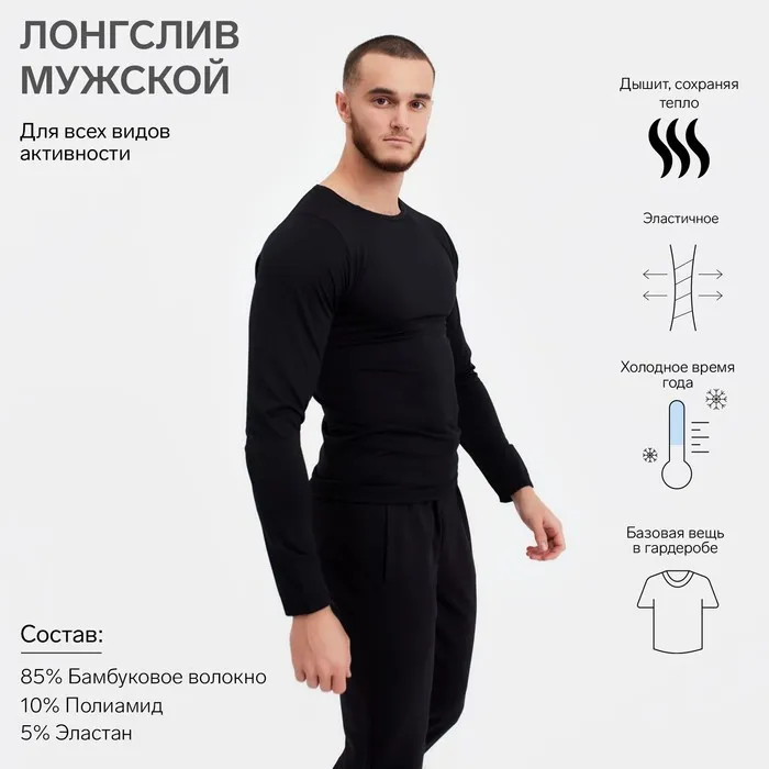 Термобельё мужское (лонгслив), цвет чёрный, размер 46-48 — Характеристики