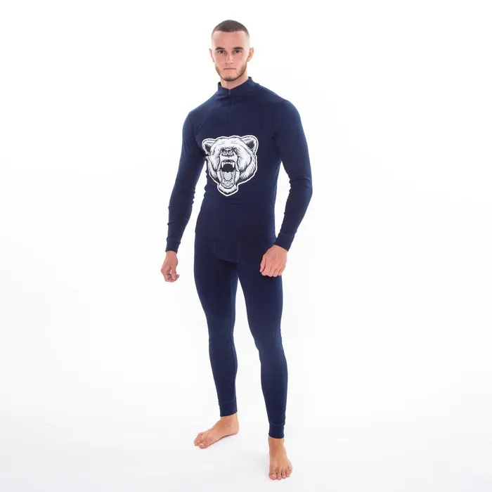 Термобельё мужское НАЧЁС (фуфайка, кальсоны) принт медведь, цвет тёмно-синий, размер 54 — Характеристики