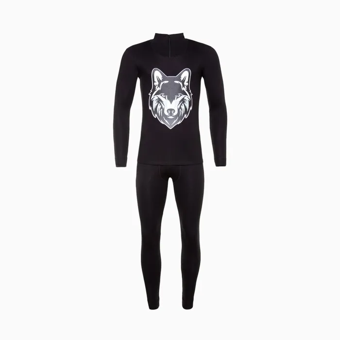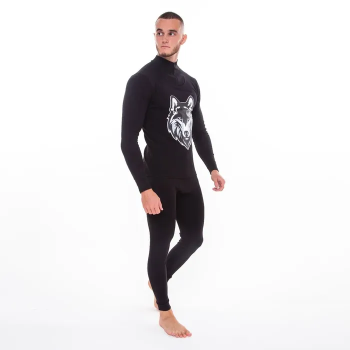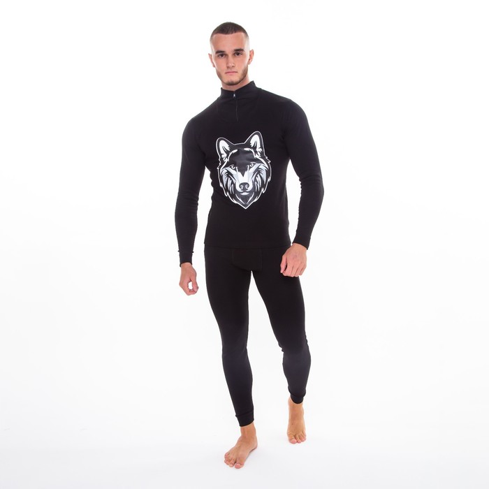 Термобельё мужское НАЧЁС (фуфайка, кальсоны) принт волк, цвет чёрный, размер 50 — Характеристики