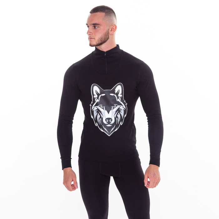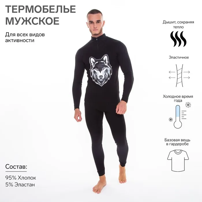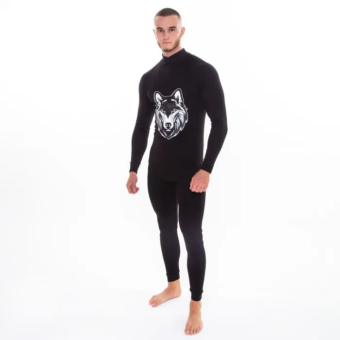 Термобельё мужское НАЧЁС (фуфайка, кальсоны) принт волк, цвет чёрный, размер 52 — Характеристики