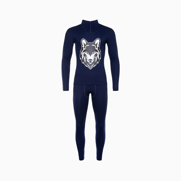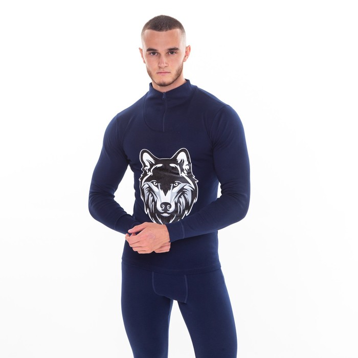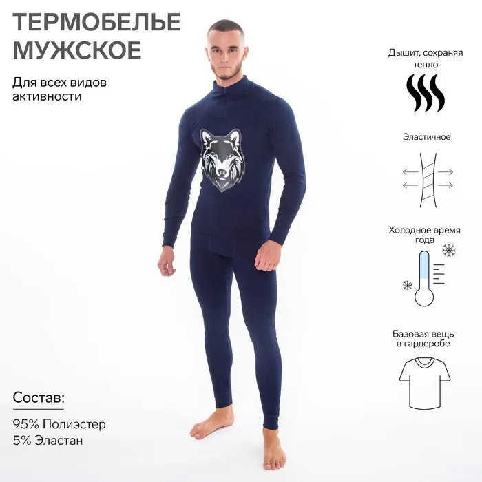 Термобельё мужское НАЧЁС (фуфайка, кальсоны) принт волк, цвет тёмно-синий, размер 48 — Характеристики