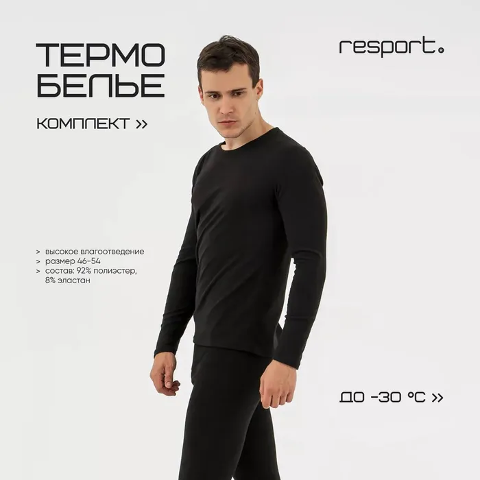 Термобельё мужское Resport, комплект: лонгслив, лосины, р. 52, чёрное — Характеристики