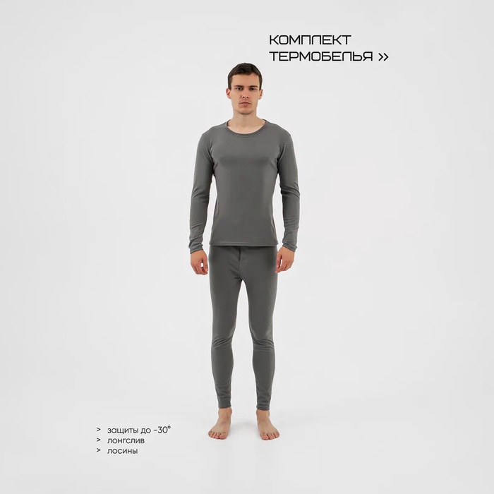 Термобельё мужское Resport, комплект: лонгслив, лосины, р. 54, серое — Характеристики