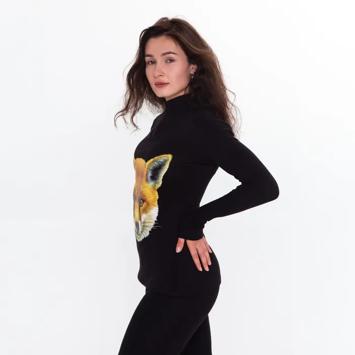Термобельё женское (джемпер, леггинсы) принт лиса, цвет чёрный, размер 42 — Характеристики