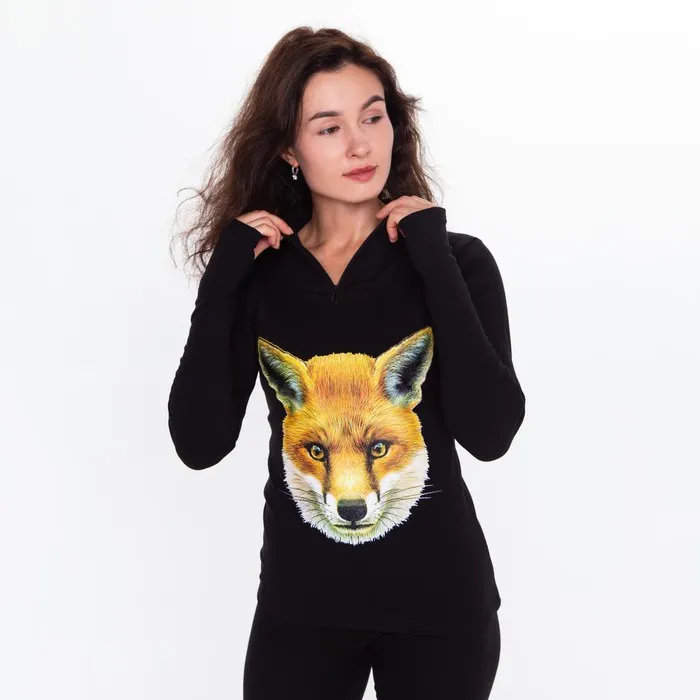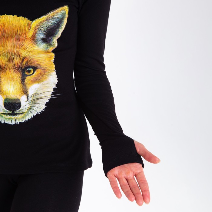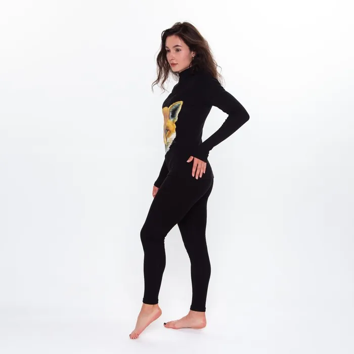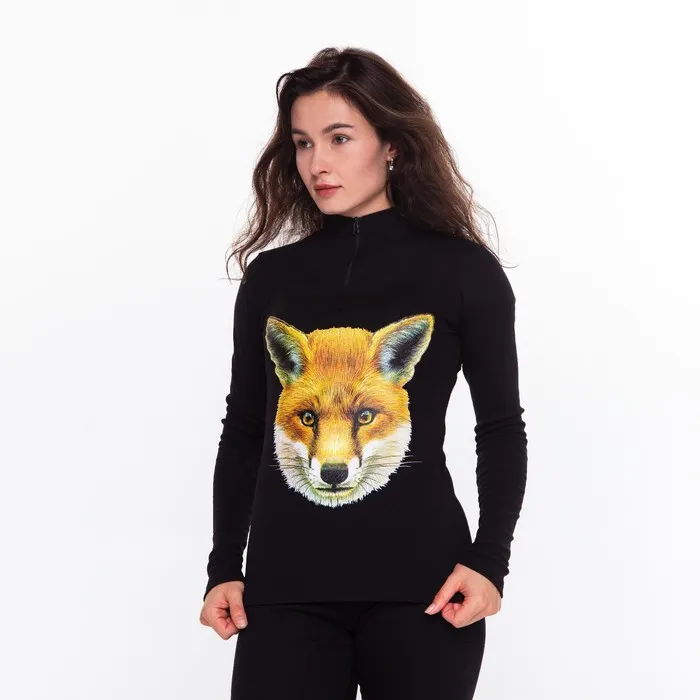 Термобельё женское (джемпер, леггинсы) принт лиса, цвет чёрный, размер 52 — Характеристики
