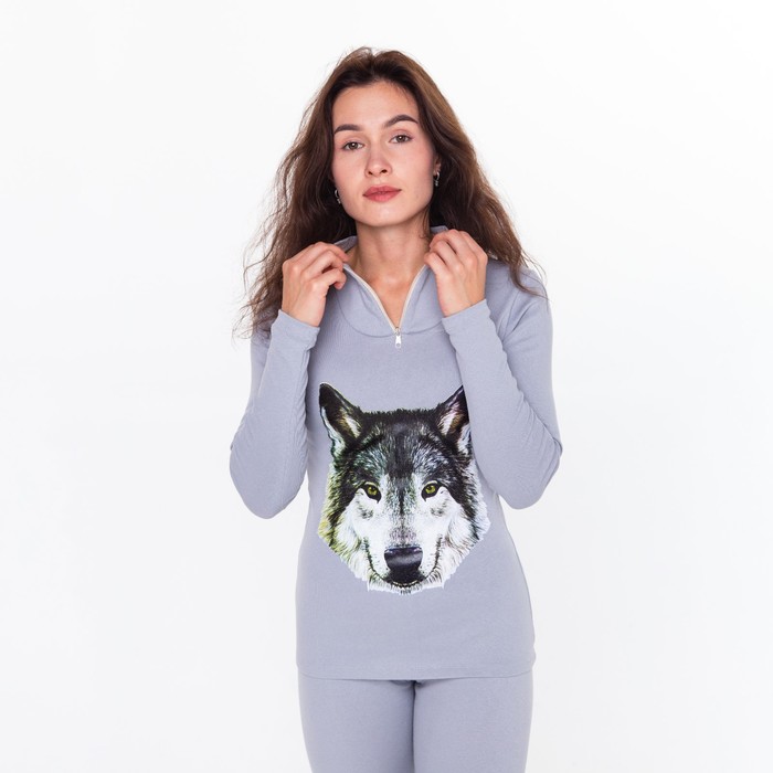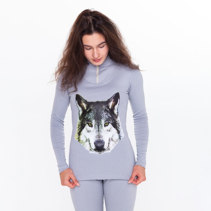 Термобельё женское (джемпер, леггинсы) принт волк, цвет светло-серый, размер 52 — Характеристики