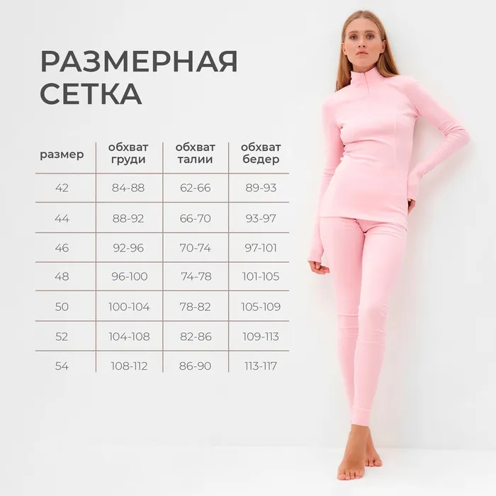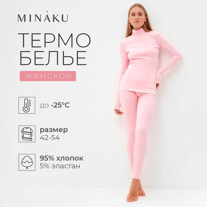 Термобельё женское (лонгслив, лосины) MINAKU цвет светло-розовый, размер 50 — Характеристики