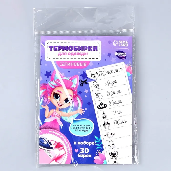 Термобирки для одежды. Набор именных термонаклеек для маркировки детских вещей «Веселая девочка», 30 шт — Характеристики