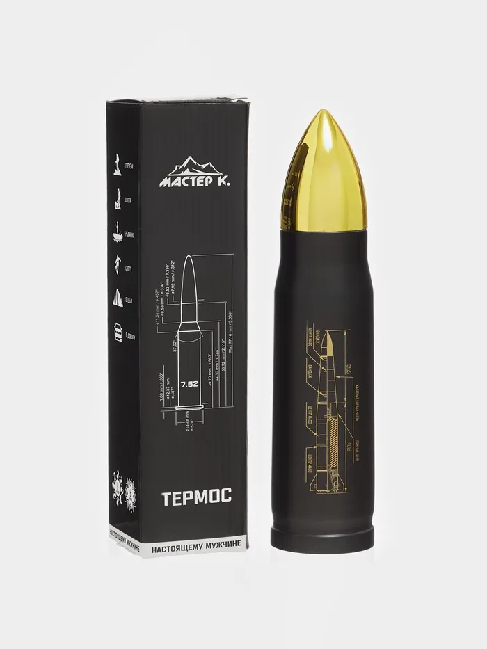Термоc пуля «Калибр настоящего мужчины», 450 мл, 28×7 см — Характеристики