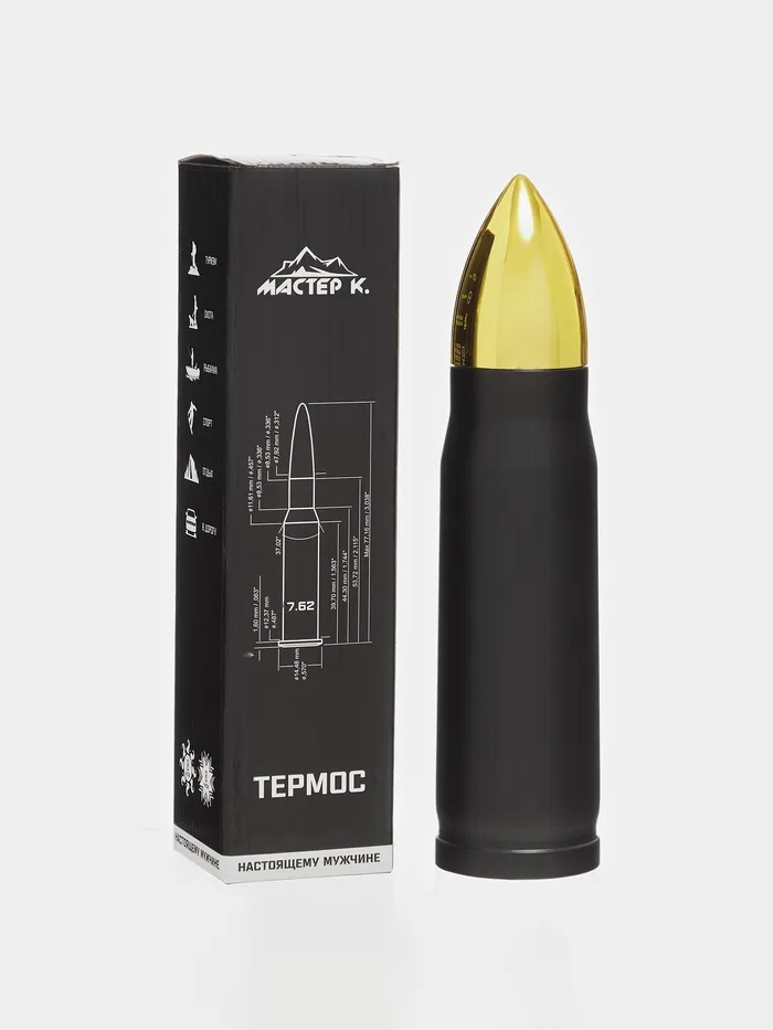 Термоc,пуля, 450 мл, «Мастер К», 28×7 см, чёрный — Характеристики