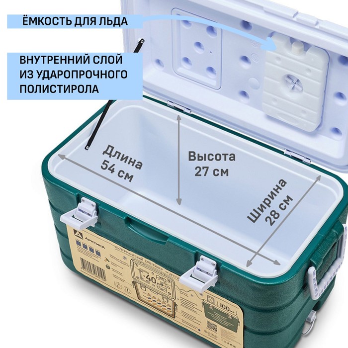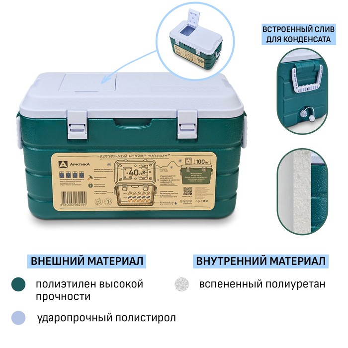 Термоконтейнер "Арктика", 40 л, 64 х 35 х 35.5 см, зеленый — Характеристики