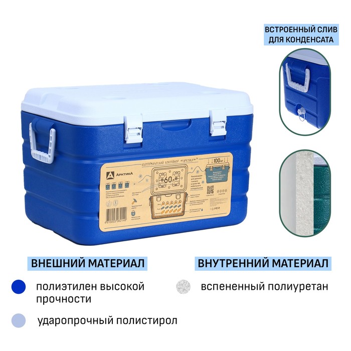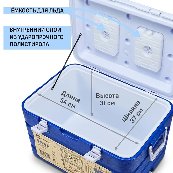 Термоконтейнер "Арктика", 60 л, 64 х 43.5 х 40 см, 2 ёмкости для льда, синий — Характеристики