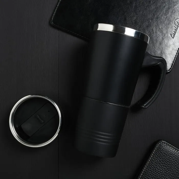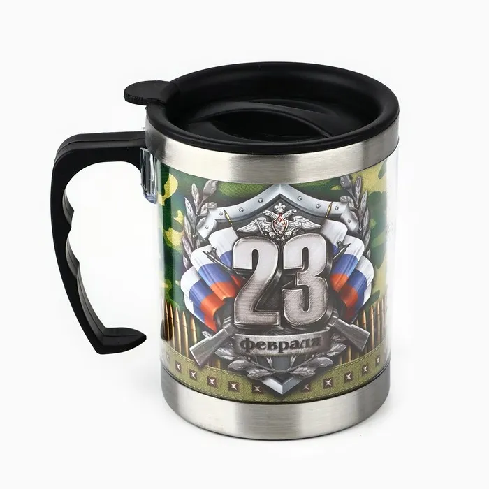 Термокружка для кофе и чая "Мастер К" идеальна для офиса, автомобиля, длительных прогулок и детям в школу. Благодаря специальному покрытию надежно лежит в руке.