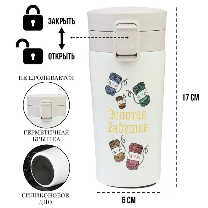 Термокружка, 380 мл, «Золотая бабушка», сохраняет тепло 8 ч, с ситечком — Характеристики
