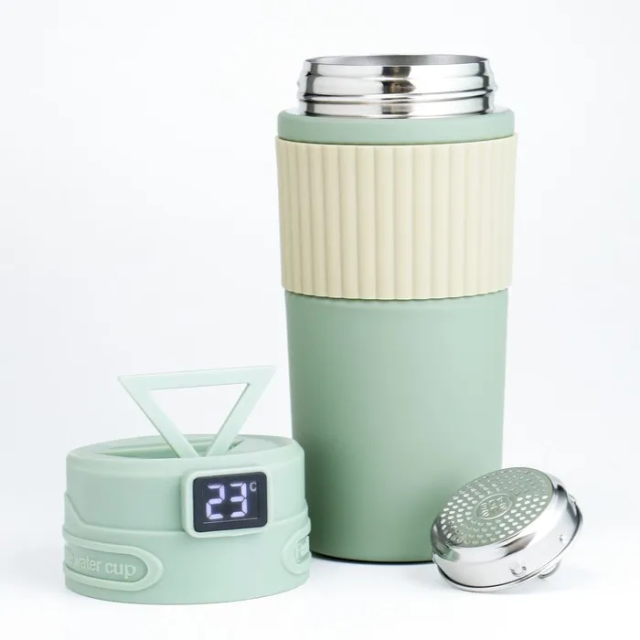 Кружка оснащена удобной крышкой, которая плотно закрывается, предотвращая проливание напитка даже во время активного движения. Материал кружки устойчив к появлению царапин и прост в уходе, что делает использование изделия еще более приятным и долговечным. Встроенный высокочувствительный датчик показывает актуальную температуру одним нажатием на экран. Перед проверкой рекомендуется перевернуть термокружку. Долговечные элементы питания для дисплея уже встроены в термос, что обеспечивает его продолжительную работу без необходимости замены батареек.
