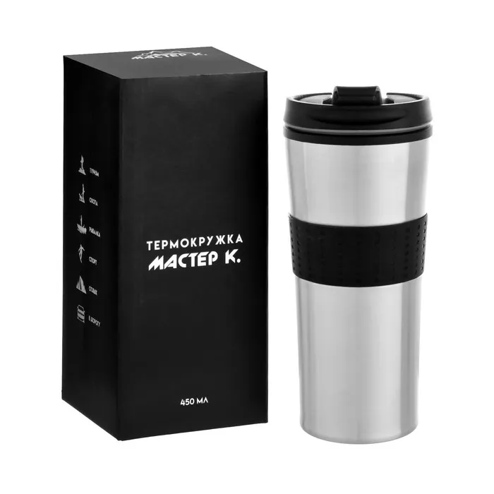 Термокружка, 450 мл, For you, сохраняет тепло 2 ч, 8×19 см, хром — Характеристики