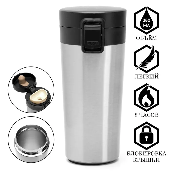 Термокружка, 500 мл, Original "Мастер К. Coffee", сохраняет тепло 10 ч, чёрная — Характеристики