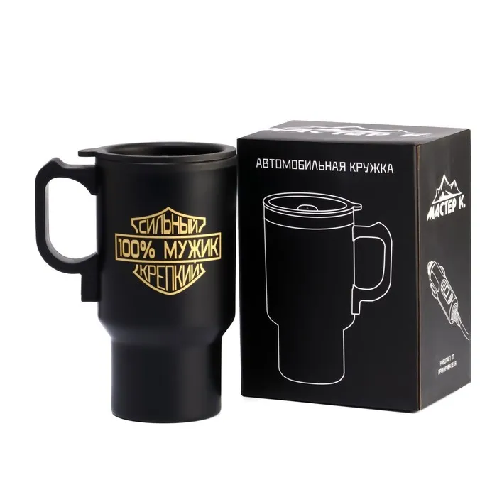 Термокружка автомобильная, 450 мл, «100 % мужик», сохраняет тепло 4 ч, 12×17 см — Характеристики