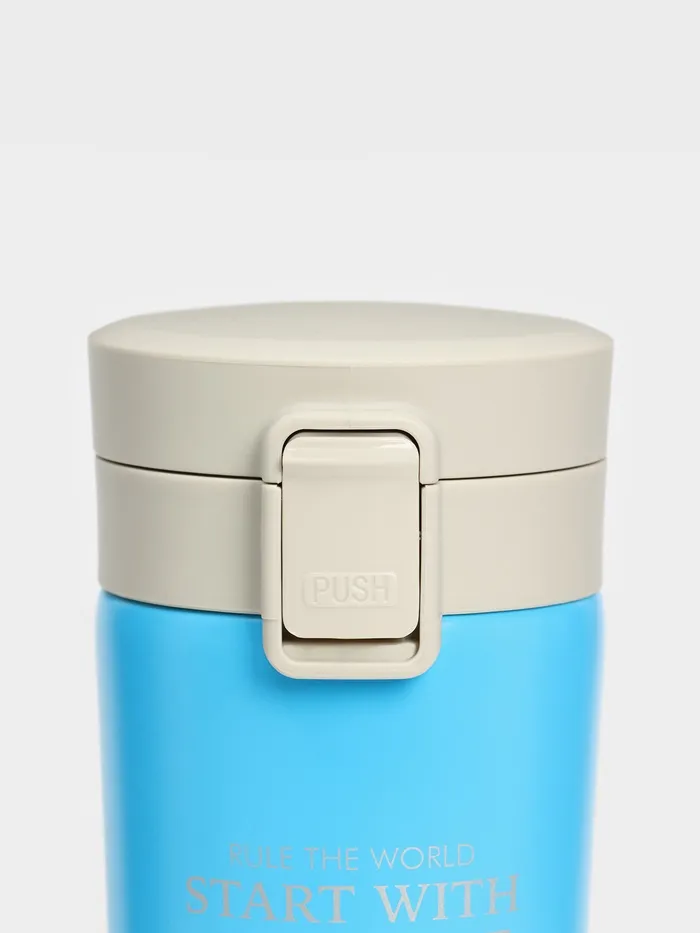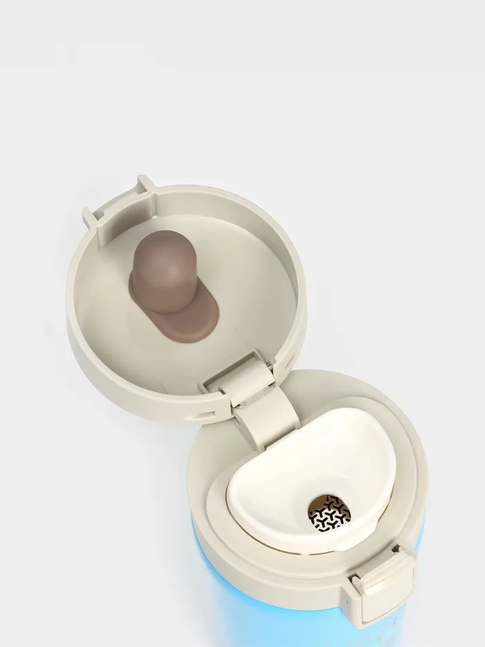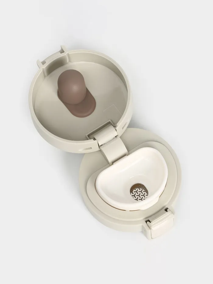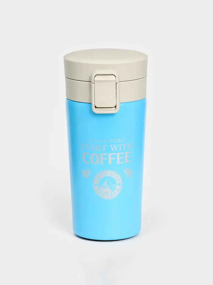 Термокружка сделана из нержавеющей стали марки 304, сконструирована по вакуумной технологии, с двойной стенкой, следовательно, долго держит тепло и не проливается. Снабжена откидывающейся крышкой, изготовленной из экологичного пищевого пластика, имеется кнопка с функцией блокировки, позволяющая с легкостью использовать термос одной рукой. На дне, термокружка имеет специальную прорезиненную основу, предотвращающую царапины на поверхностях.