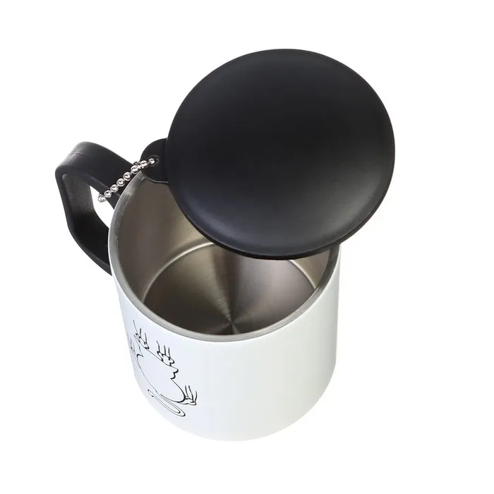 Кружка имеет удобную пластиковую ручку. При желании вы можете снять крышку и использовать ее без нее. Классическая форма стакана обеспечит удобство использования, а авторский дизайн подчеркнёт индивидуальность обладателя.