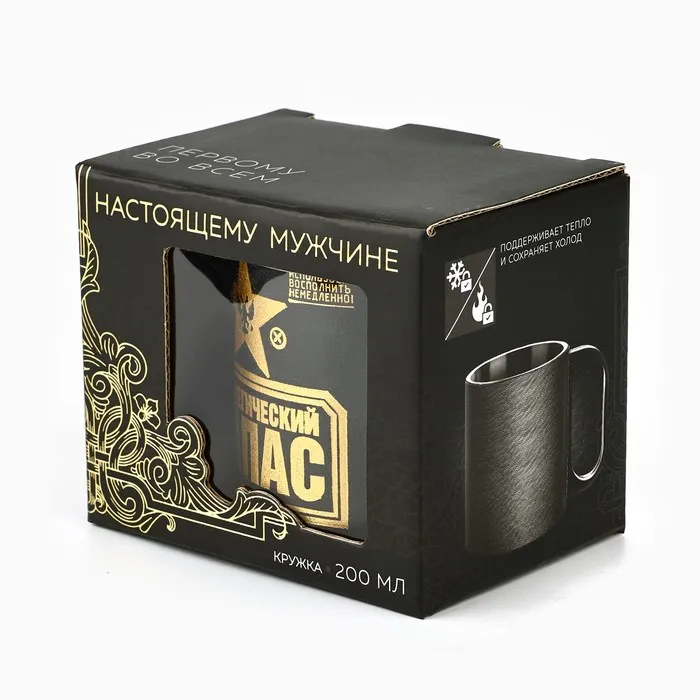 – Термокружка станет практичным аксессуаром и отличным подарком для мужчины.