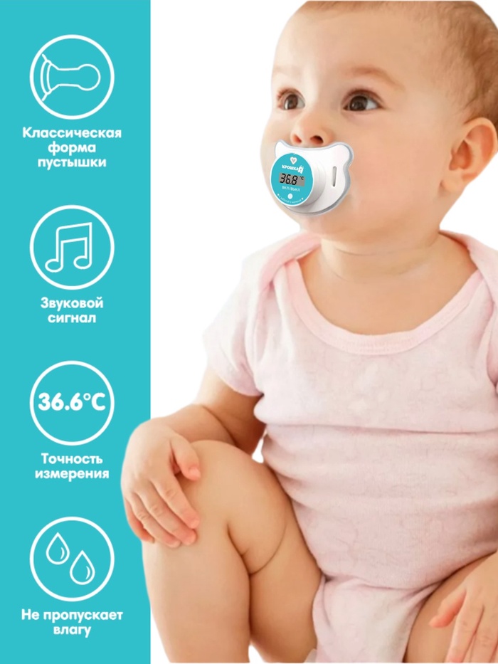 Термометр оснащен звуковым сигналом после окончания измерения и тревожным сигналом, если температура малыша будет повышена. Электронный термометр станет самым удобным и комфортным способом определения температуры тела Вашего малыша,ребенок не будет сопротивляться.