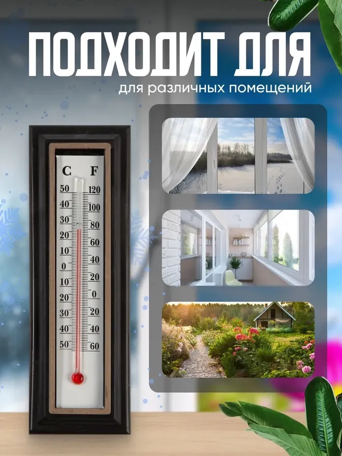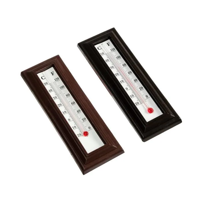 Термометр предназначен для определения температуры воздуха в помещении. Прибор отображает температуру по шкале Цельсия и по Фаренгейту. Жидкость в столбике представляет собой подкрашенный спирт, что делает изделие безопасным в быту. Классический дизайн термометра «под дерево» гармонично впишется практически в любой интерьер.