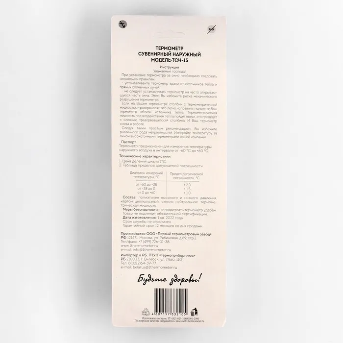 Термометр оконный ТСН-15 "Гвоздик" (t -60 + 60 С) в блистере — Характеристики
