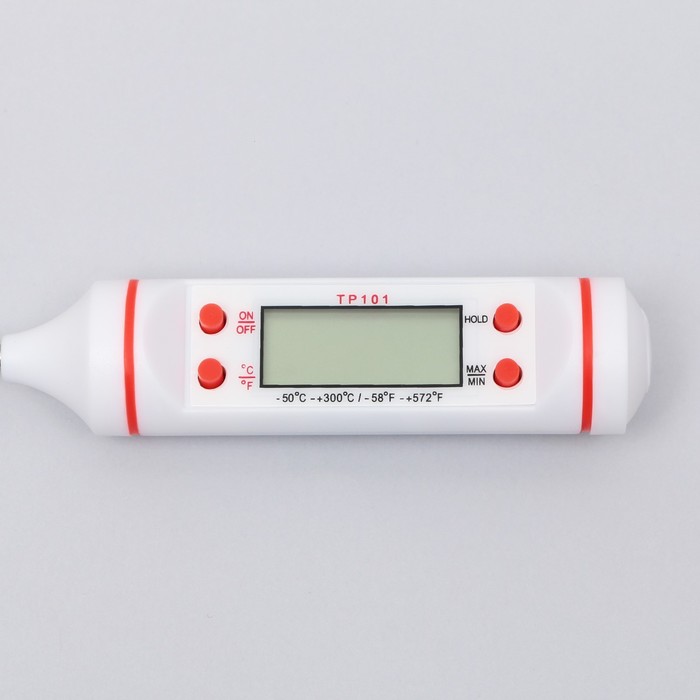 Термометр представляет собой щуп из нержавеющей стали с пластиковой ручкой, в которую встроен дисплей. Термометр предназначен для измерения температуры жидких, сыпучих и полутвердых сред методом погружения щупа-иглы в измеряемую среду. Простое и легкое в использовании устройство обладает низким электропотреблением, высокой стабильностью и точностью измерения температуры.