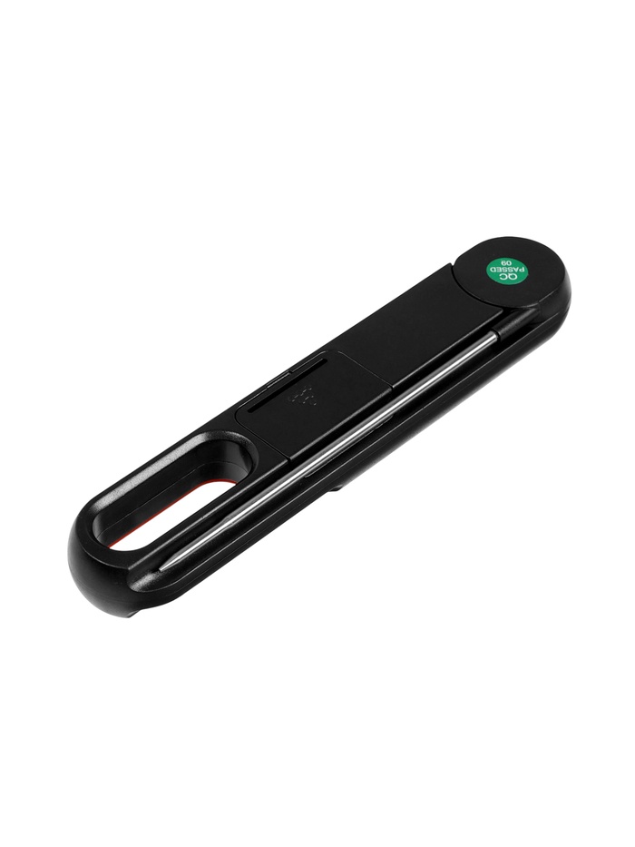 Цифровой дисплей обеспечивает мгновенное считывание данных, а складная конструкция щупа повышает безопасность и упрощает хранение. Устройство полностью автономно и не привязано к розетке, что особенно удобно при готовке.