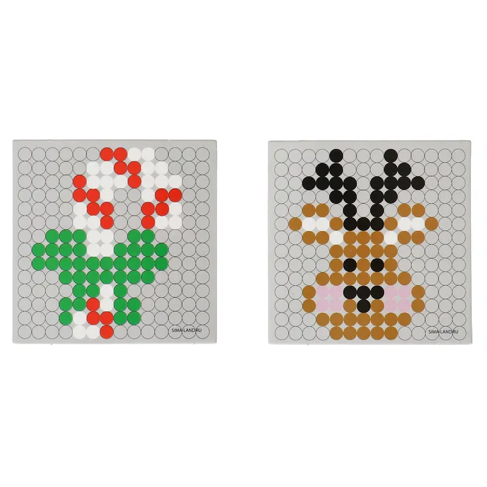 - Разместите схему под прозрачной основой. С помощью пинцета выложите на основе детали соответствующих цветов.