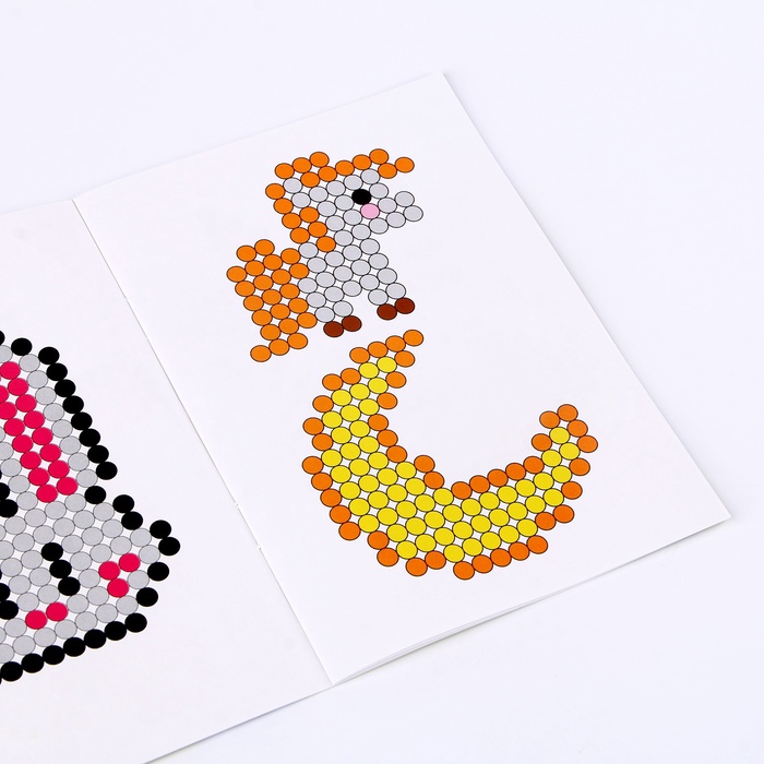 - Разместите схему под прозрачной основой. С помощью пинцета выложите на основе детали соответствующих цветов.