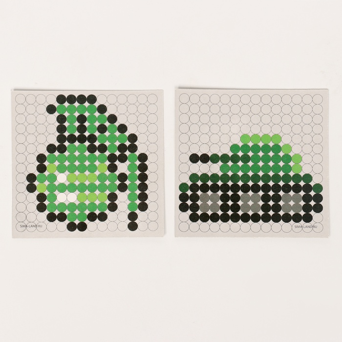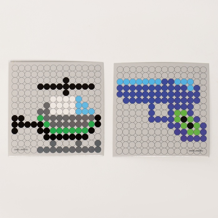 - Разместите схему под прозрачной основой. С помощью пинцета выложите на основе детали соответствующих цветов.
