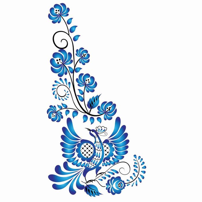 Термонаклейка «Гжель птица», уголок справа, 20 х 35 см, набор 10 шт. — Характеристики