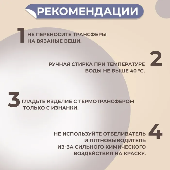 - Гладьте изделие с термотрансфером только с изнанки.