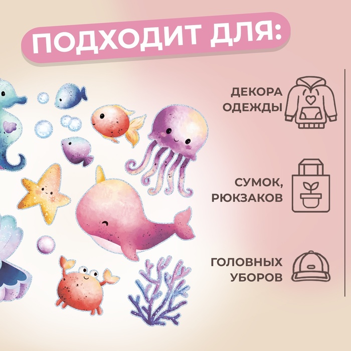 Термонаклейка «Морской мир», с блёстками, 19.1×18.3 см — Характеристики