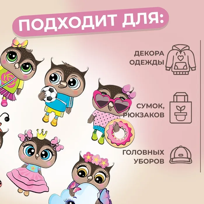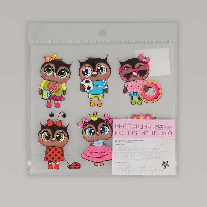 Термонаклейка «Совушки», 19.5×21 см, 6 дизайнов — Характеристики